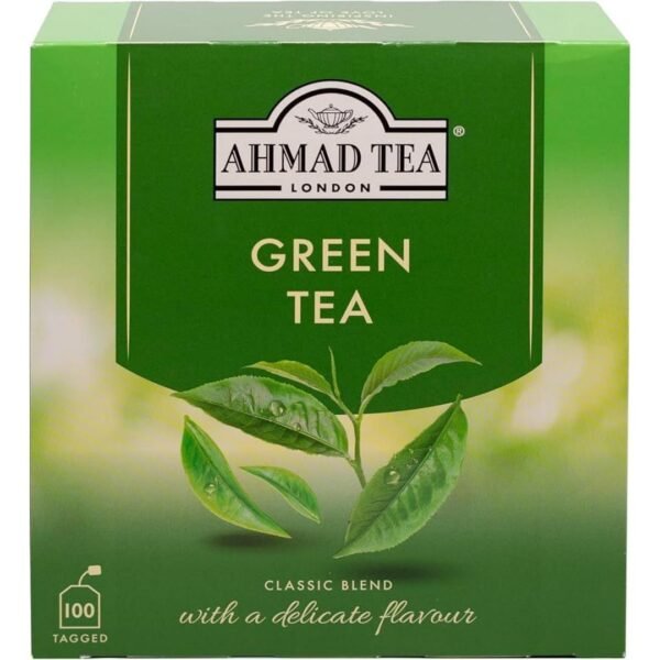 Enjoy a classic, refreshing cup with Ahmad Green Tea โ 100 tea bags per box.