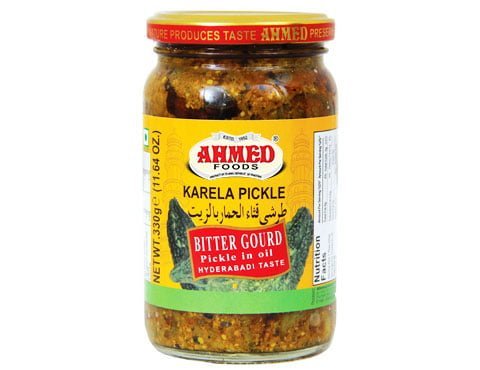 Authentic Ahmed Karela Pickle, a deliciously bitter and tangy Indian condiment.