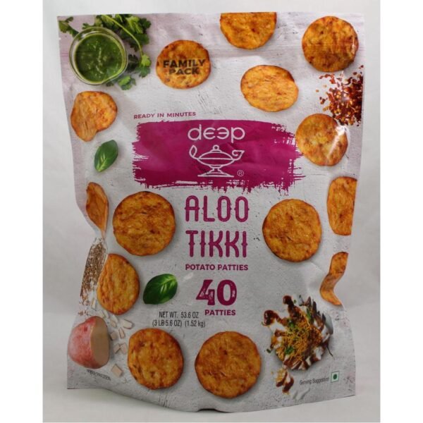 Forty delicious, ready-to-cook aloo tikki patties for quick and easy snacking or appetizers.