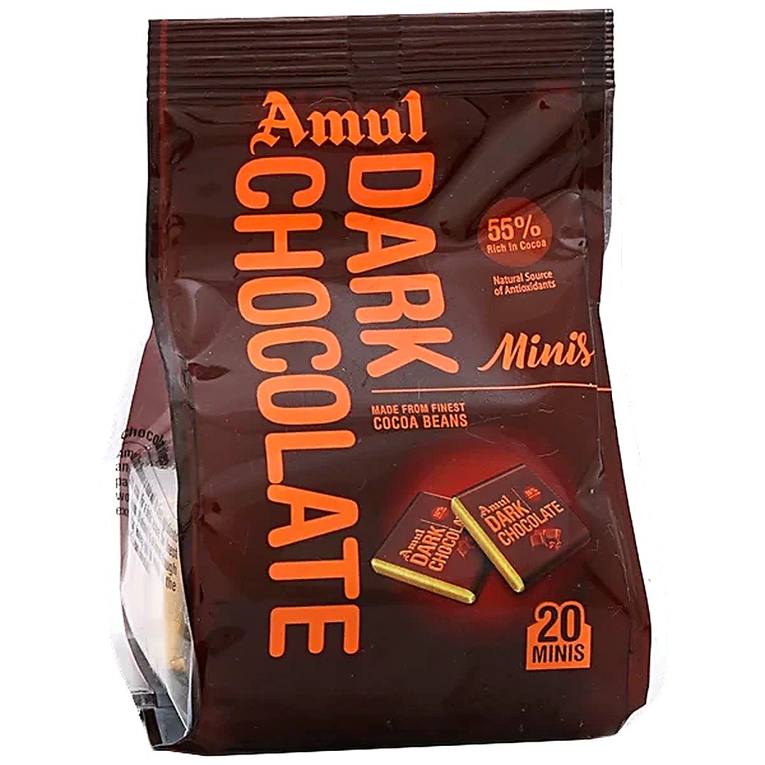 Indulge in rich, dark chocolate with these perfectly portioned Amul Dark Mini treats.