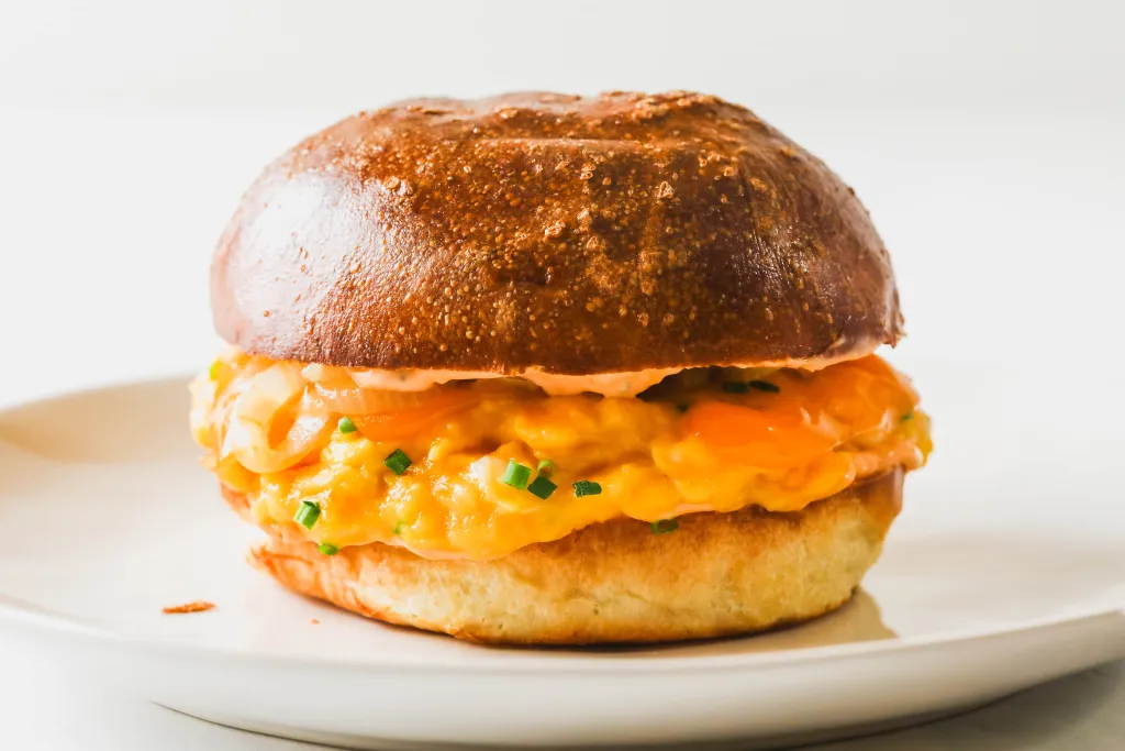 Soft, golden brioche buns topped with a perfectly cooked egg for a delicious meal.