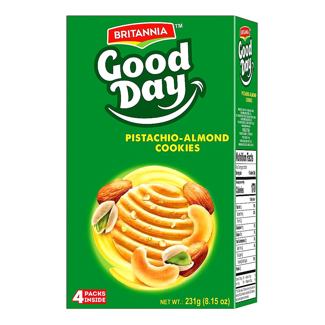 Enjoy the classic, wholesome taste of Britannia Good Day Pistachio Almond biscuits.
