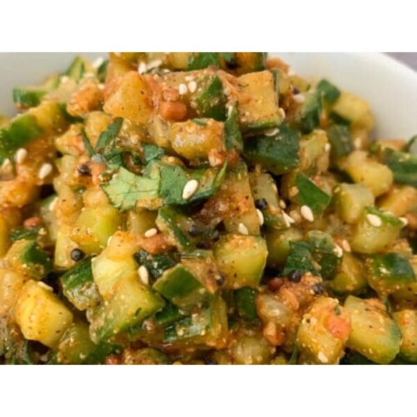 Enjoy authentic Dosakaya Pachadi, a flavorful and convenient ready-to-eat Indian side dish.