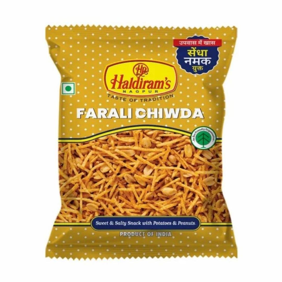 Enjoy the savory crunch of Haldiram’s Farali Chiwda, a traditional Indian snack.