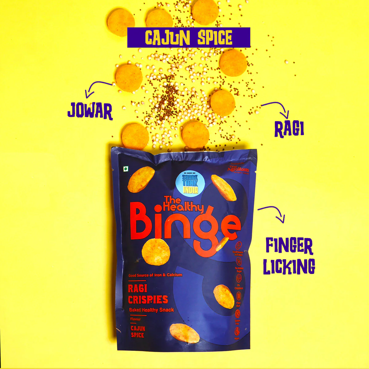 Enjoy a flavorful, crunchy snack with Hathi Brand Ragi Cajun Crispies โ a healthier twist on a classic.