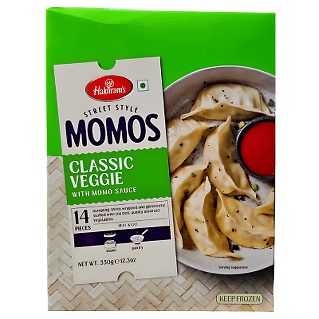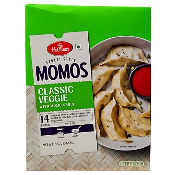 Enjoy delicious, ready-to-cook Haldiram’s Veg Momos – perfect for a quick and tasty meal.