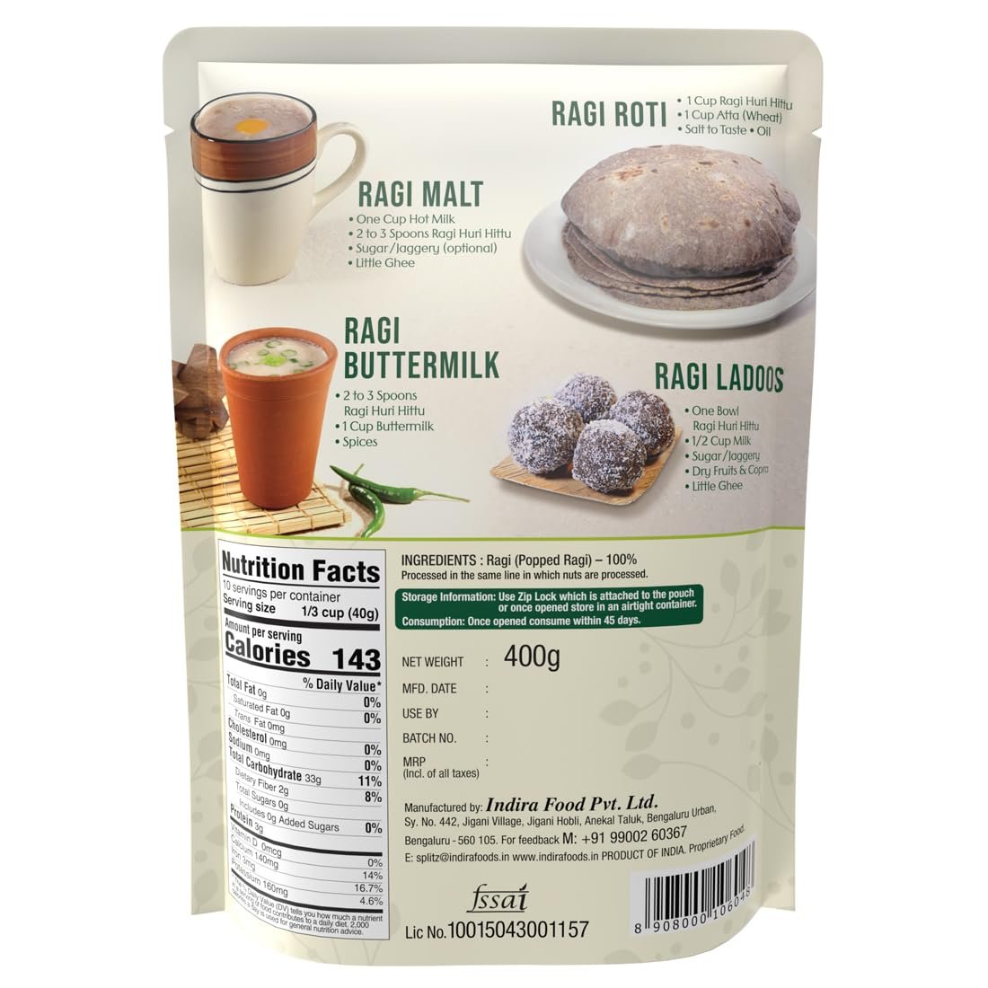 Indira’s Ragi Huri Hittu Popped Ragi Flour