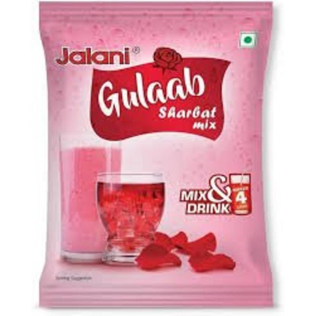 Enjoy the delicate floral taste of JALANI Gulaab Sharbat Mix, a refreshing and aromatic beverage.