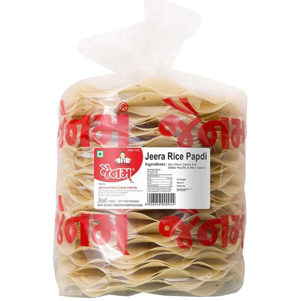 Crispy, flavorful Jainam Jeera Rice Papdi โ the perfect snack or accompaniment to any meal.