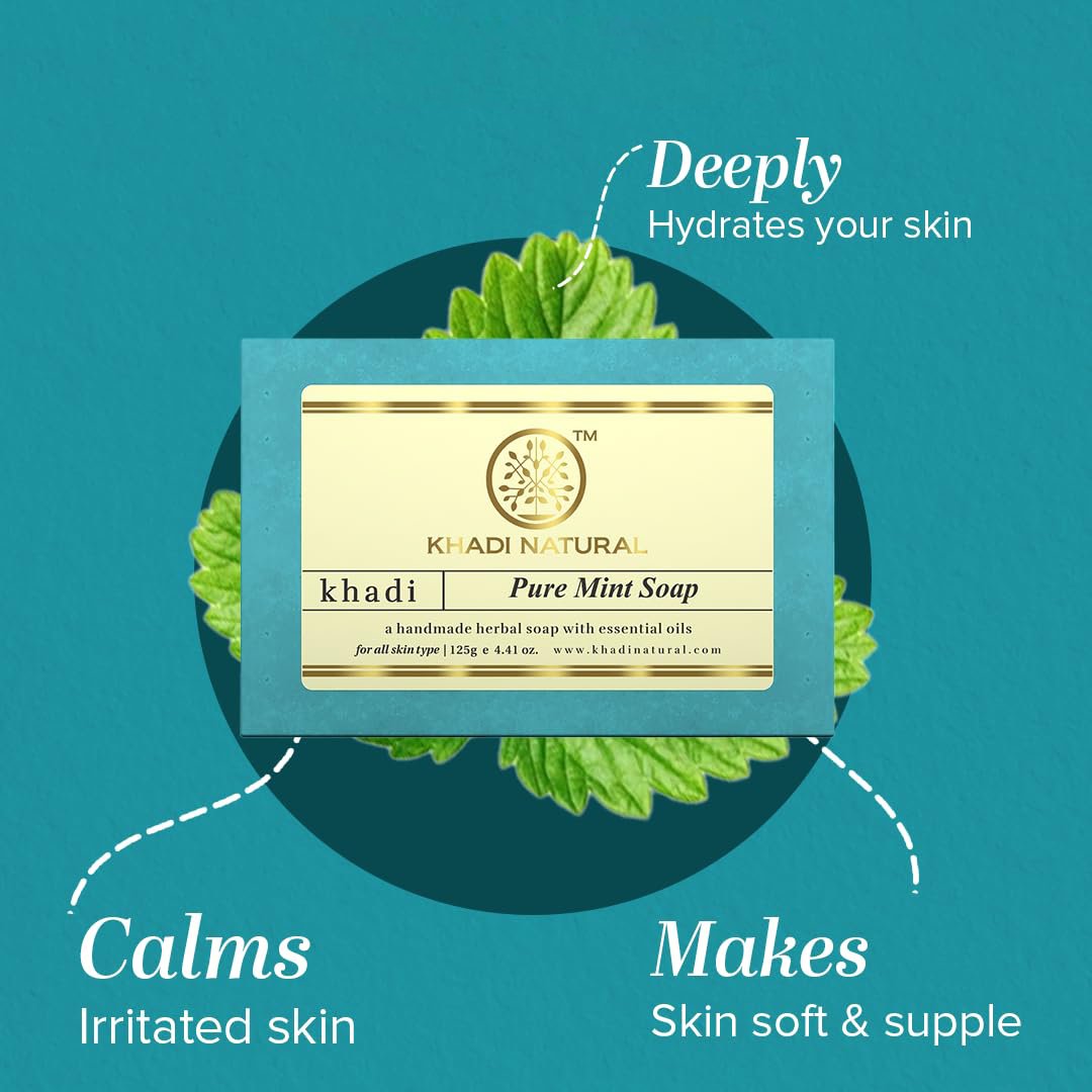 Cool and cleanse with Khadi Natural Pure Mint Soap for a refreshed, revitalized complexion.