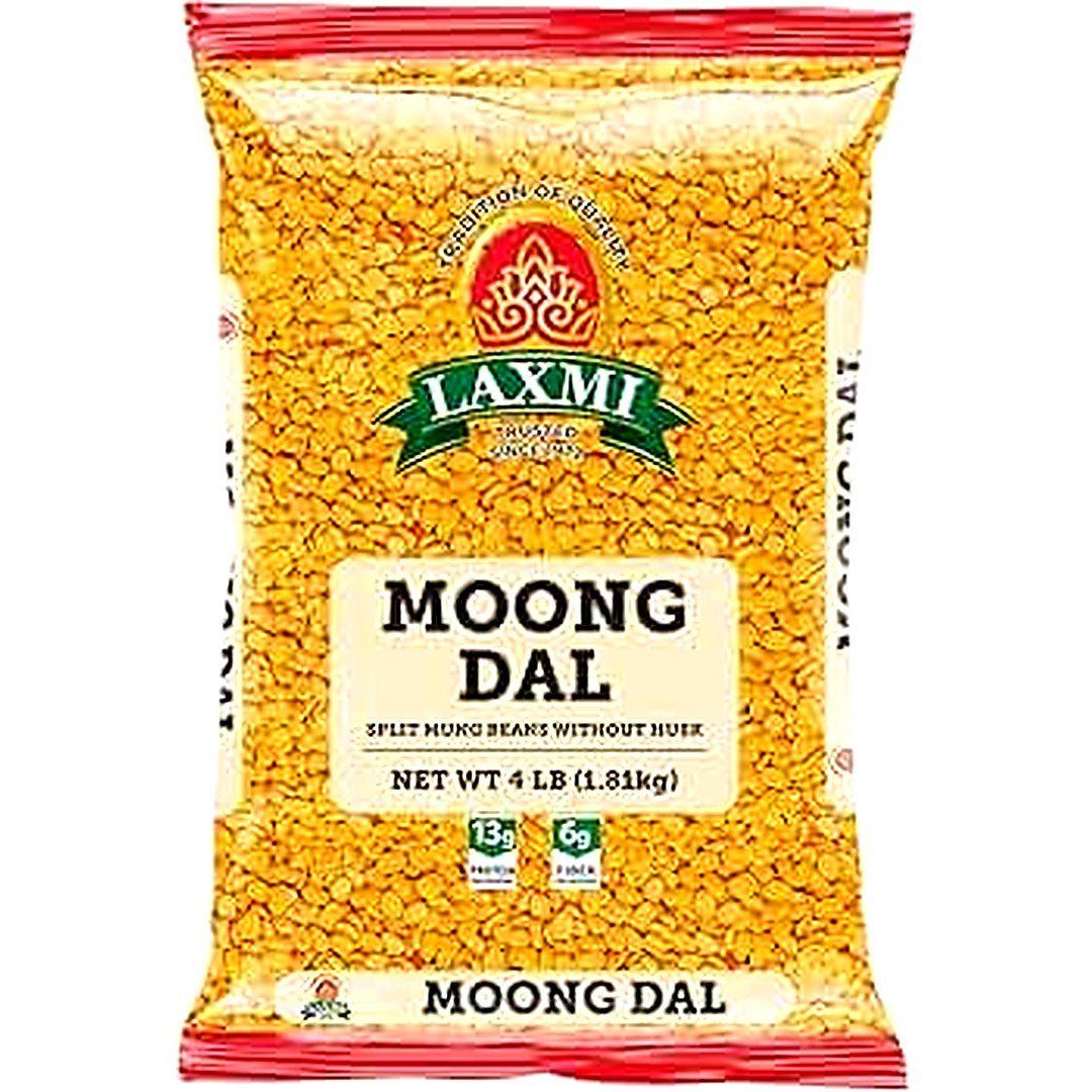 Wholesome LAXMI Moong Dal, an 8lb staple for flavorful and nutritious meals.