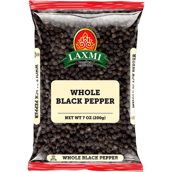 Enhance your cooking with LAXMI Whole Black Pepper—fresh flavor in every grind.
