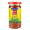 Authentic, tangy mango pickle made without garlic, bringing a taste of South India to your table.
