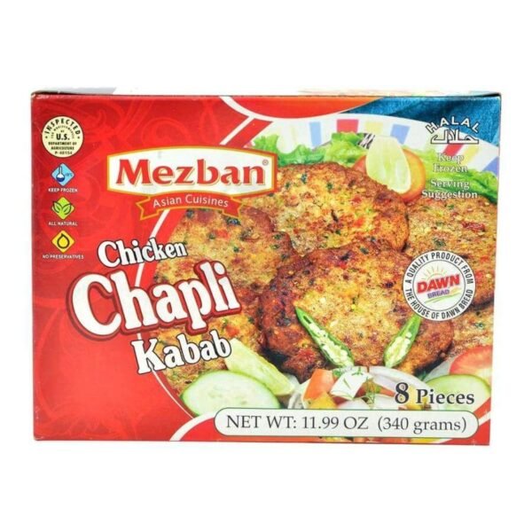Savor the authentic taste of Mezban Chicken Chapli Kabab โ flavorful, seasoned patties ready to enjoy.