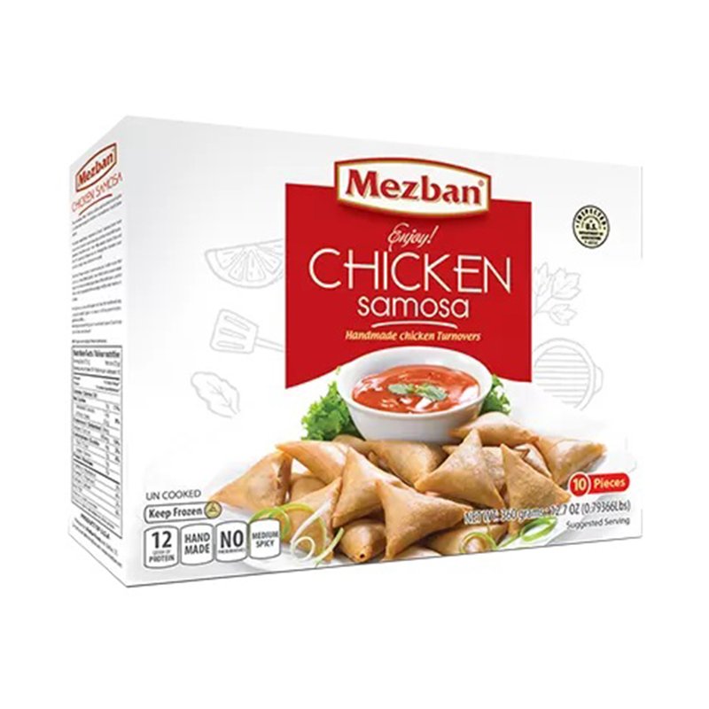 Enjoy savory, crispy Mezban chicken samosas โ a delightful taste of traditional flavors.