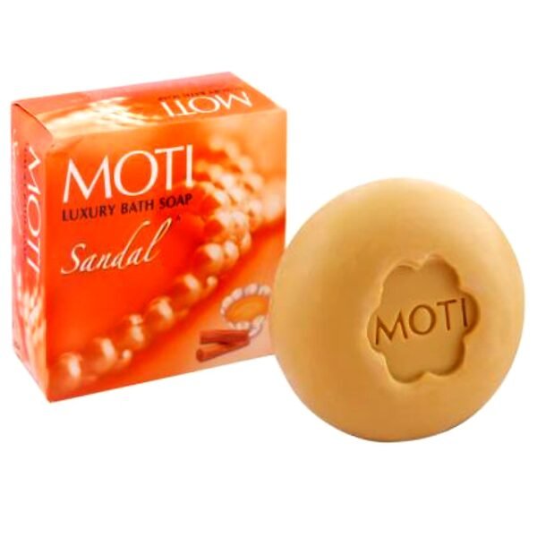 Moti Sandal Soap cleanses and refreshes, leaving skin feeling soft and subtly scented.