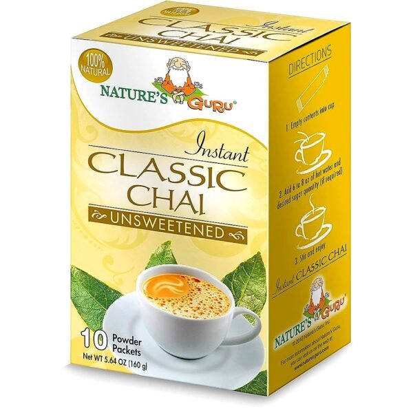Enjoy a rich, aromatic chai experience with Nature’s Guru Instant Classic Chai.
