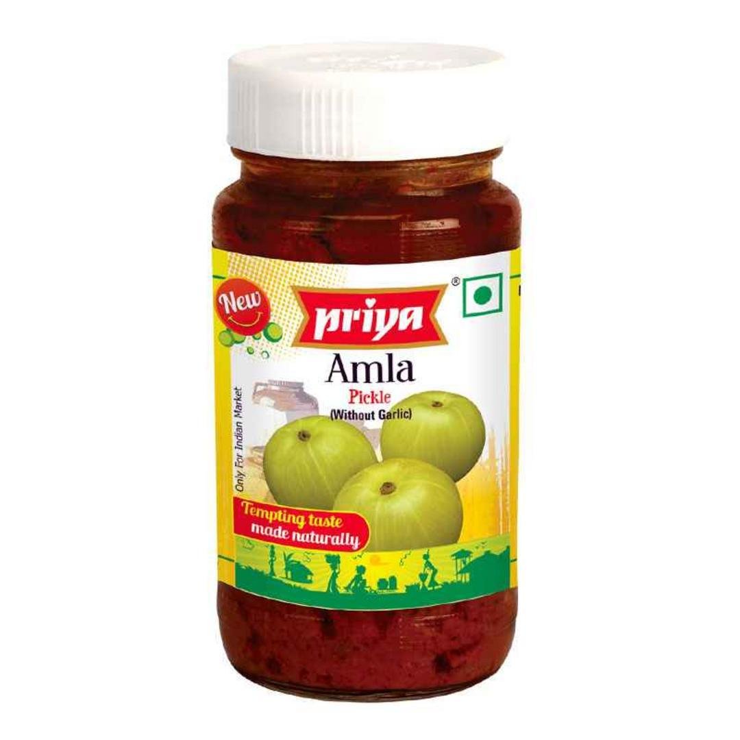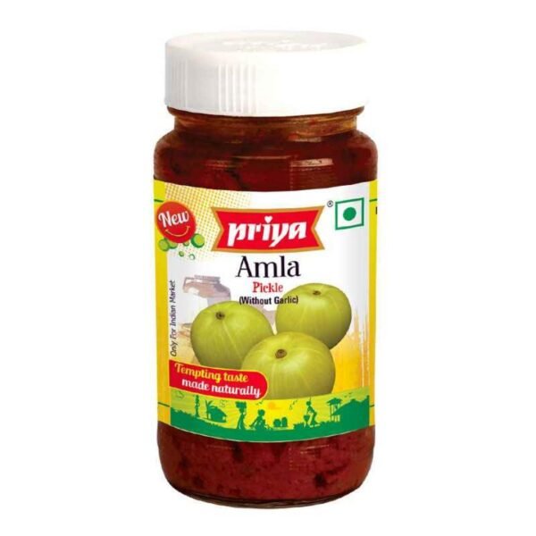 Priya Amla Pickle: a tangy, spicy, and flavorful Indian condiment in a 300g jar.