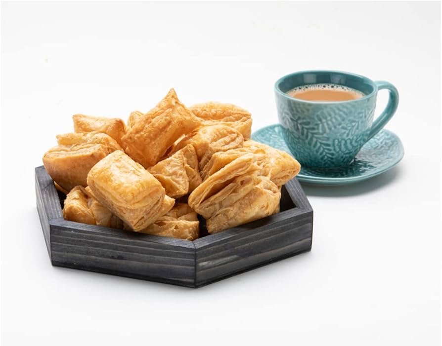 Enjoy a classic, flavorful biscuit with RAMDEV Plain Khari—perfect for tea time.