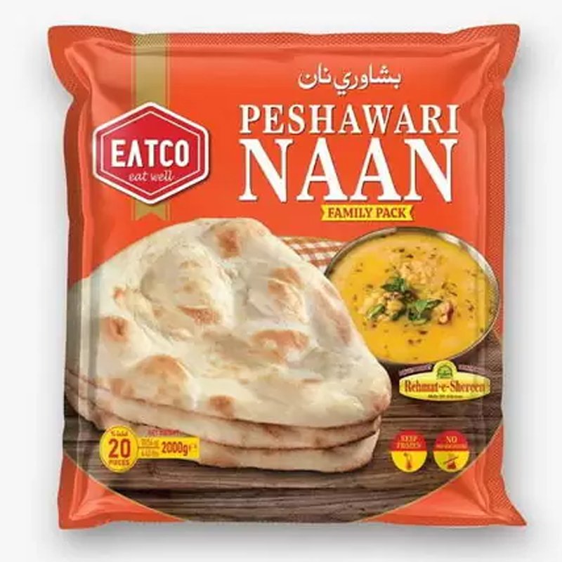 Enjoy authentic Peshawari Naan, ready to heat and eat in minutes—20 pieces per pack.