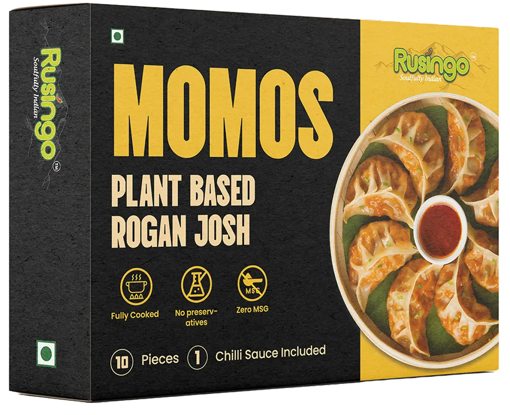 Experience the bold flavors of Kashmiri Rogan Josh, deliciously encased in tender, plant-based momos.