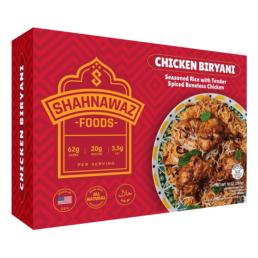 Enjoy an authentic taste of South Asia with Shahnawaz’s flavorful, ready-to-eat Chicken Biryani.