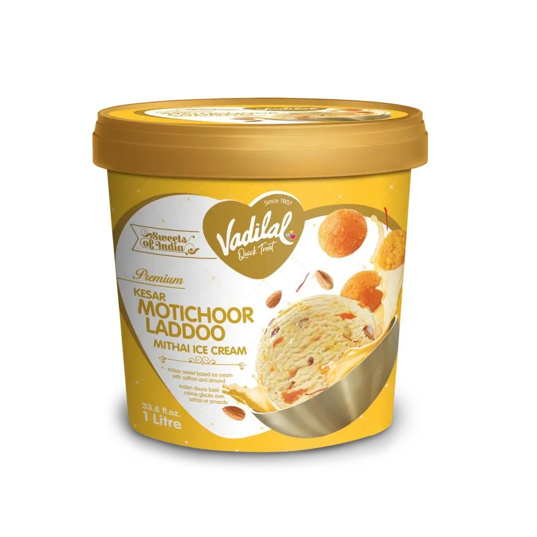 Indulge in the classic Indian sweet treat of Mootichoor Ladoo, now in creamy ice cream form.