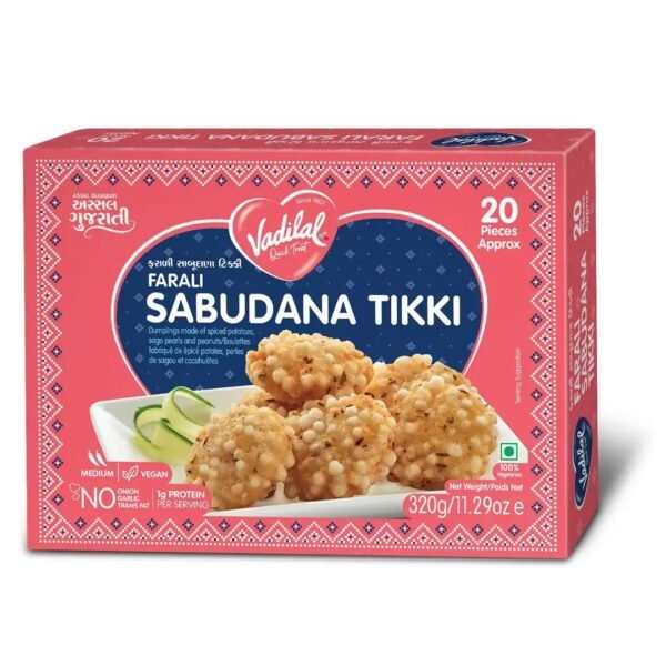 Enjoy delicious, ready-to-eat Vadilal Sabudana Tikki โ a flavorful and convenient snack!