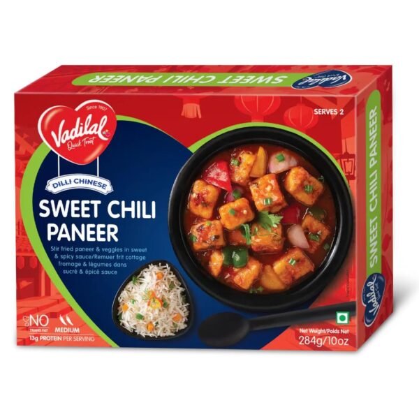 Enjoy the sweet and spicy kick of Vadilal Sweet Chilli Paneer, ready to elevate your meals.