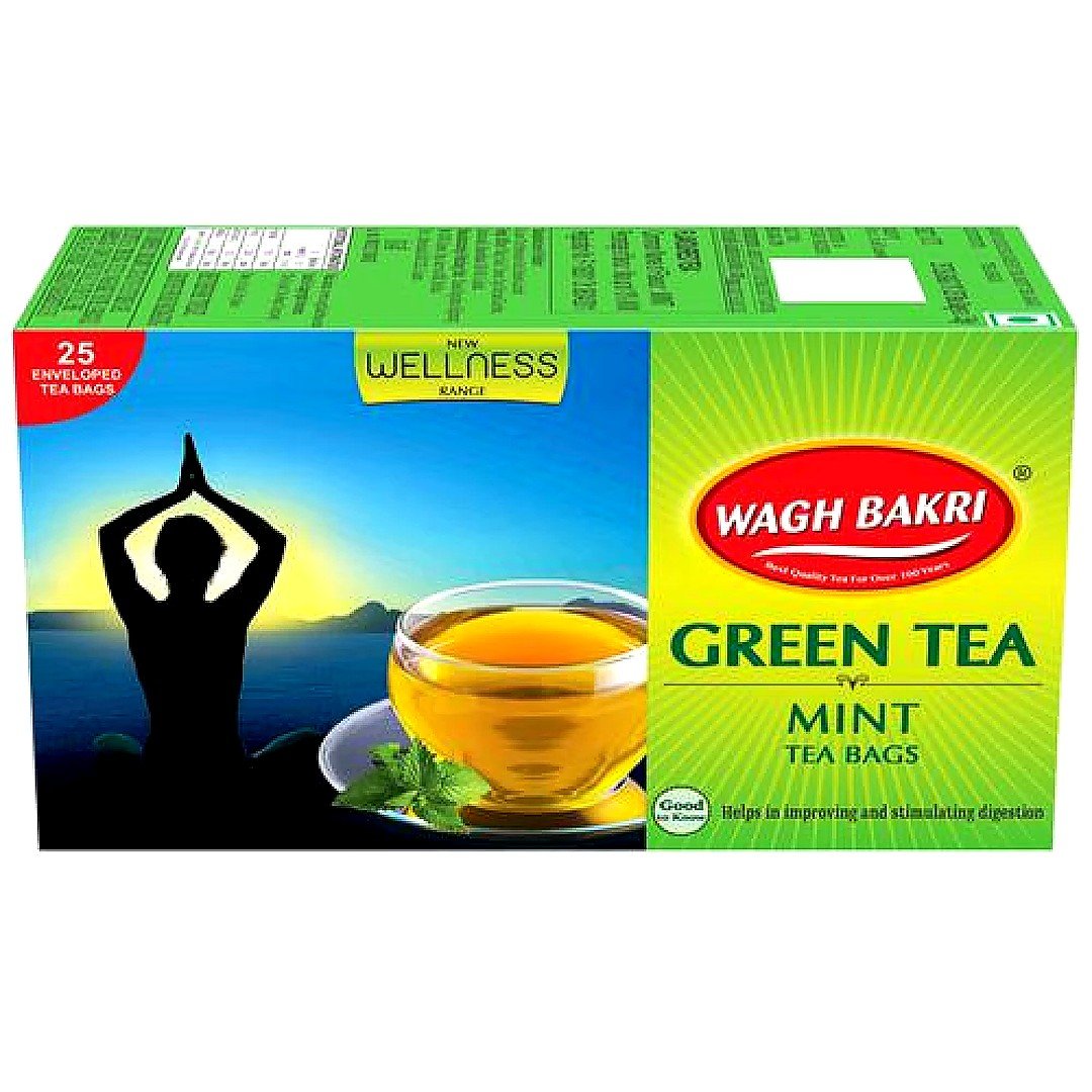 Enjoy the refreshing taste of Wagh Bakri Mint Green Tea, a delightful blend in every cup.